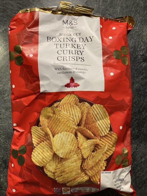 For anyone confused by Boxing Day in the name of these crisps: Boxing Day is 26 December, a bank holiday in England, when traditionally tradesmen (the dustmen, your gardener, the postman, in the days of open fires the coalman, maybe even your local shop owner) would call in expectation of a seasonal tip. In the road where I live there is always a collection for the dustmen (garbage collectors) and the postman.
